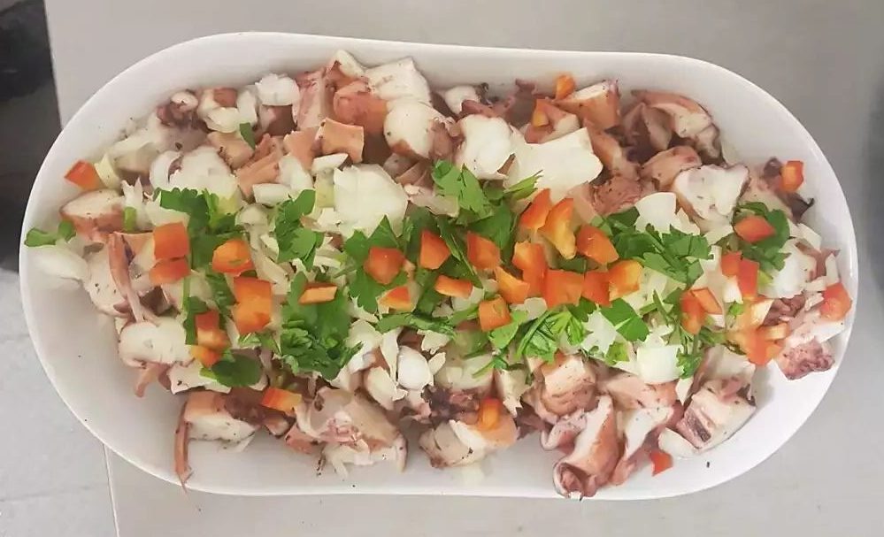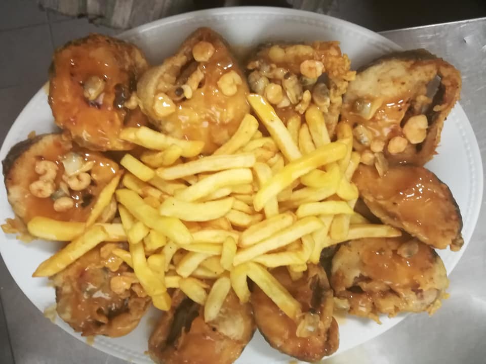 Plats variés typique portugais (soupe,steak, salade, gesiers...)Poulpe délicieuse Prix correct Ambiance sympa